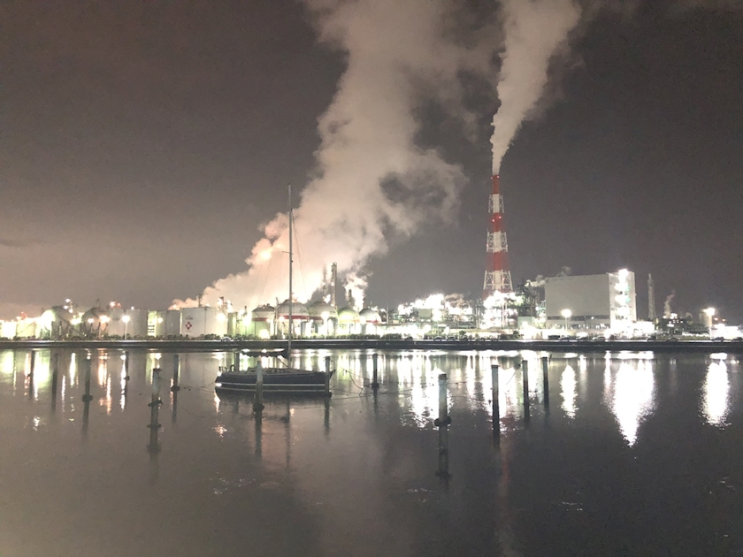 コンビナート見ながら休憩して