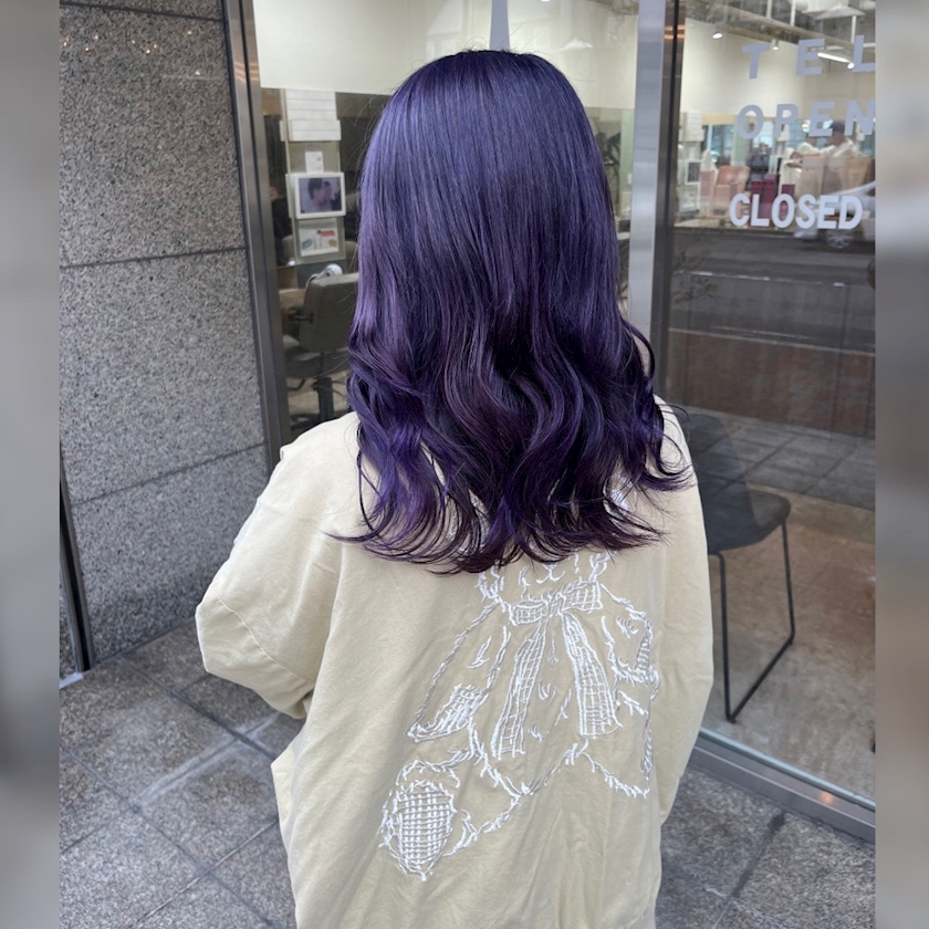 真紫だった髪色も