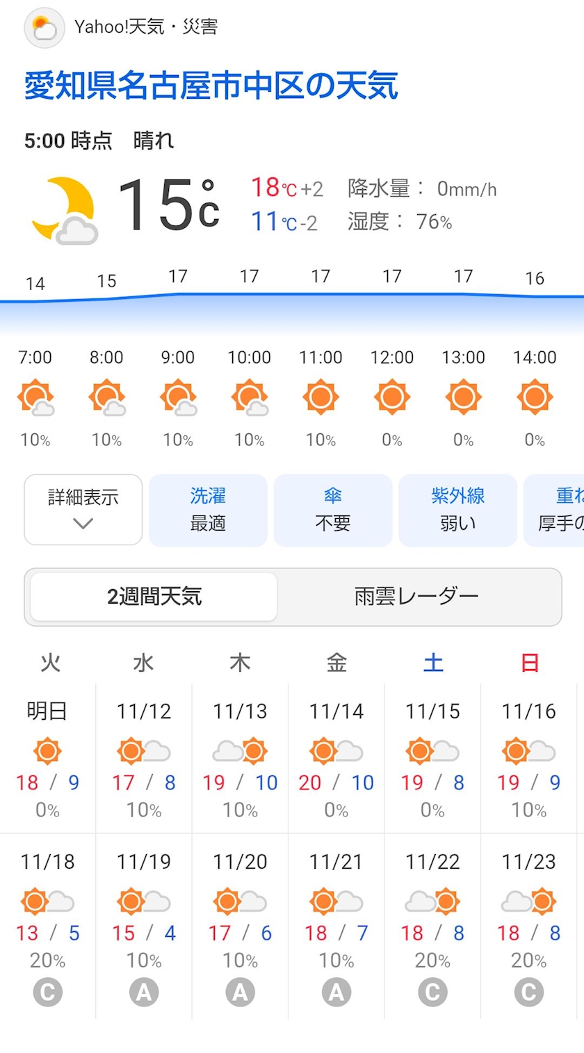今日の名古屋の天気は晴れ☀️