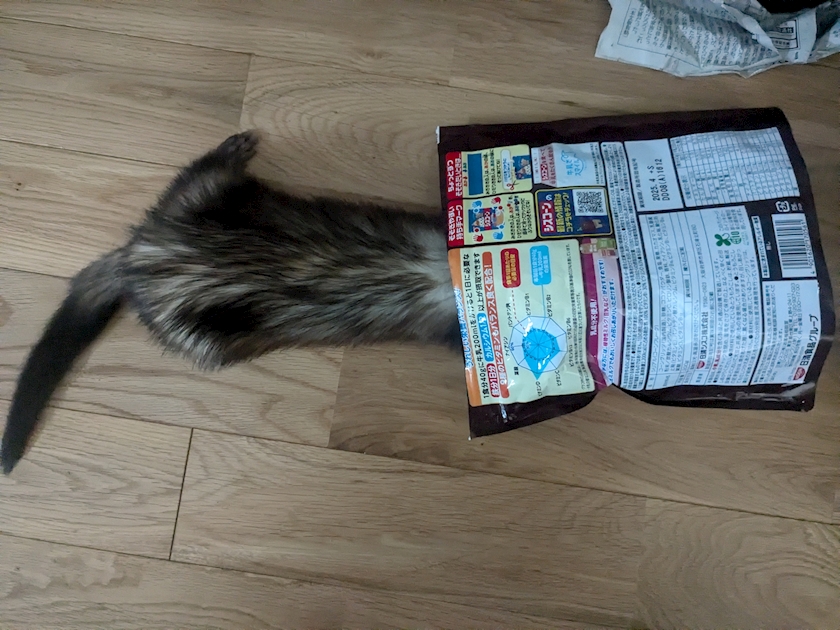 空のコーンフレークの袋の中に
