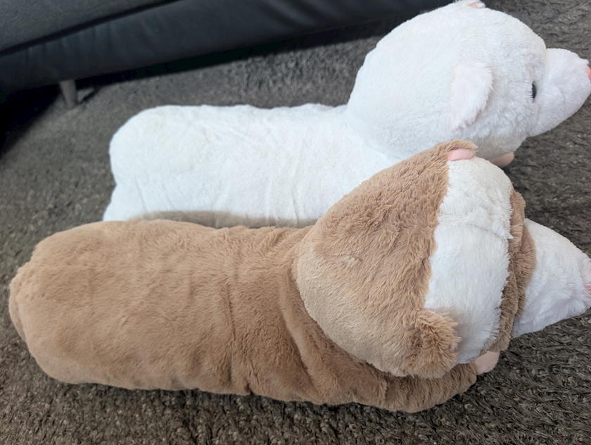 フェレットのぬいぐるみの上に