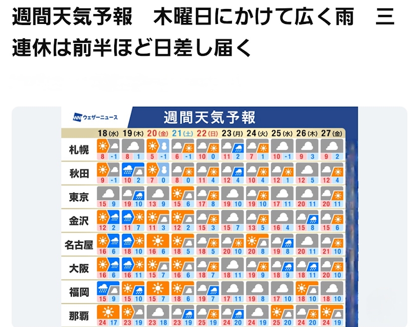 来週は20℃らへんまで!