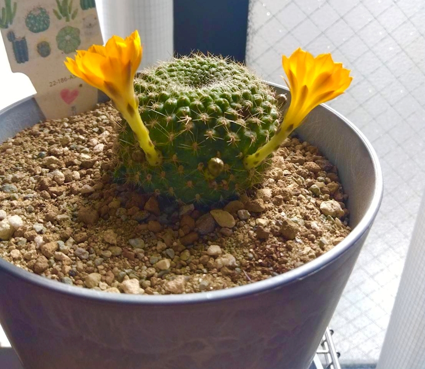 今朝うちのサボ、開花🌵