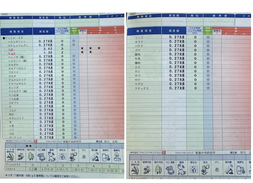 そしてこないだしたアレルギー検査の結果☀️