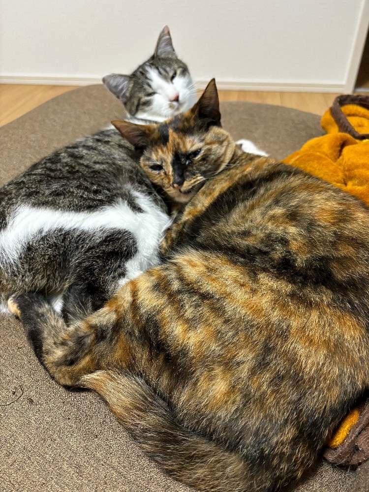 最近暑いせいか一緒に寝てくれへん