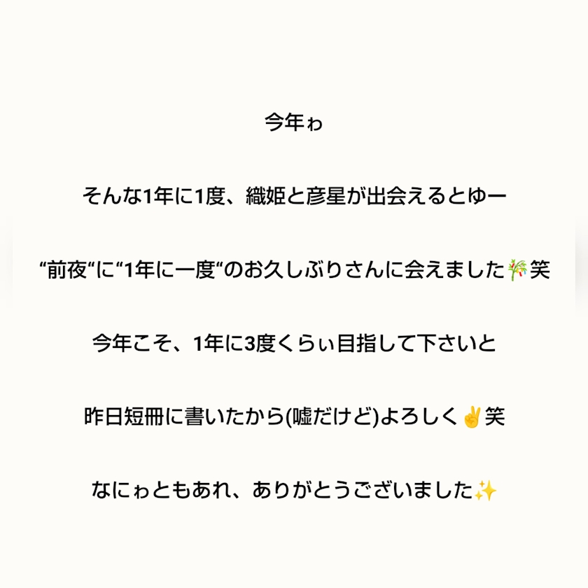 もしかしたら短冊の願い事、叶うかもしれなぃっ🎋