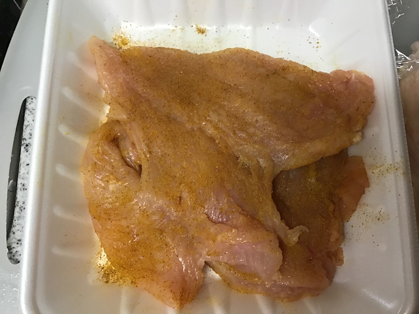 半分 は 塩コショウ と カレー粉 を まぶし