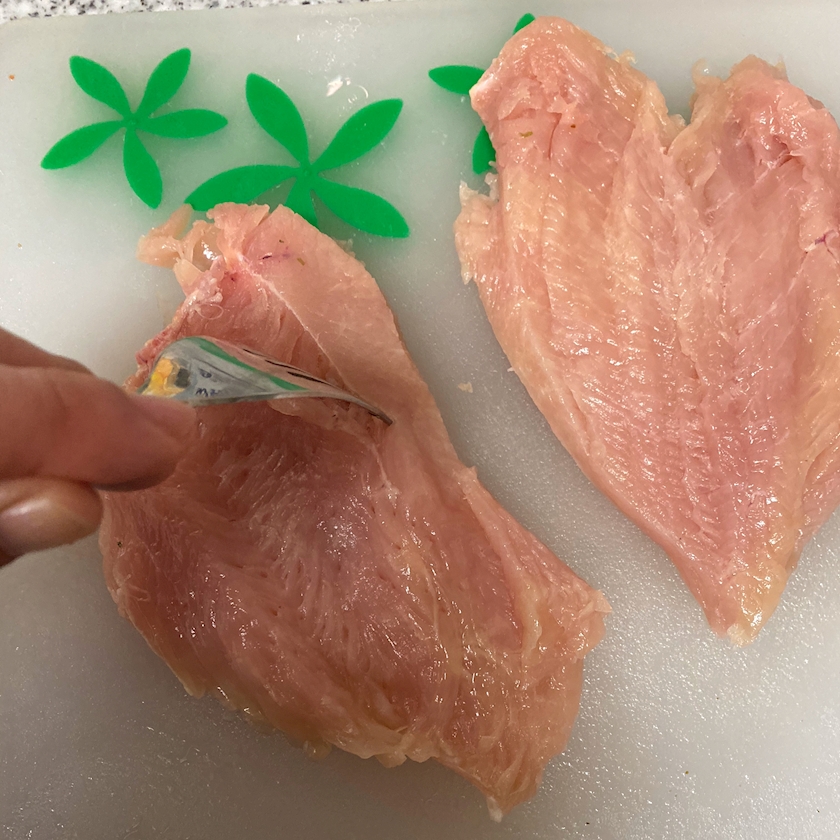 鶏胸肉 の 皮 を むいて