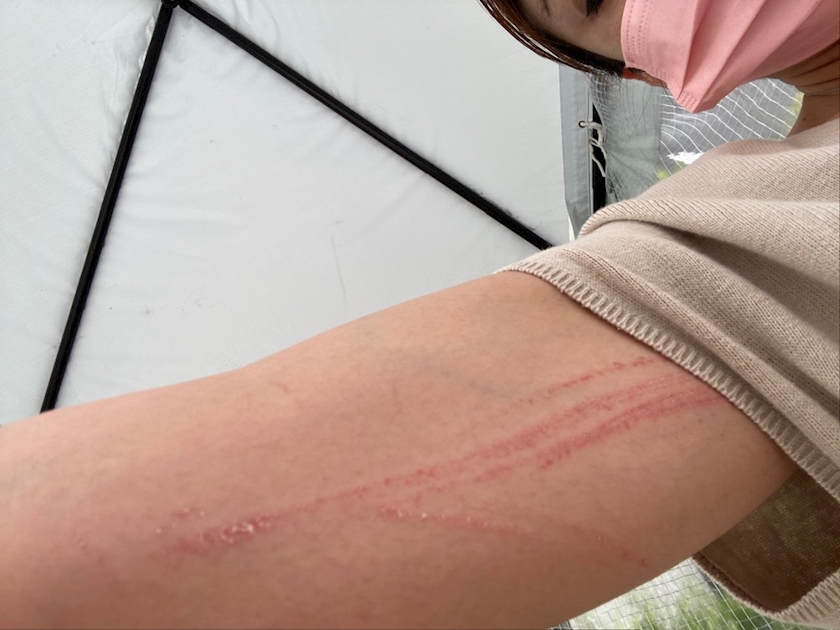 腕は傷だらけやし 😱😱😱