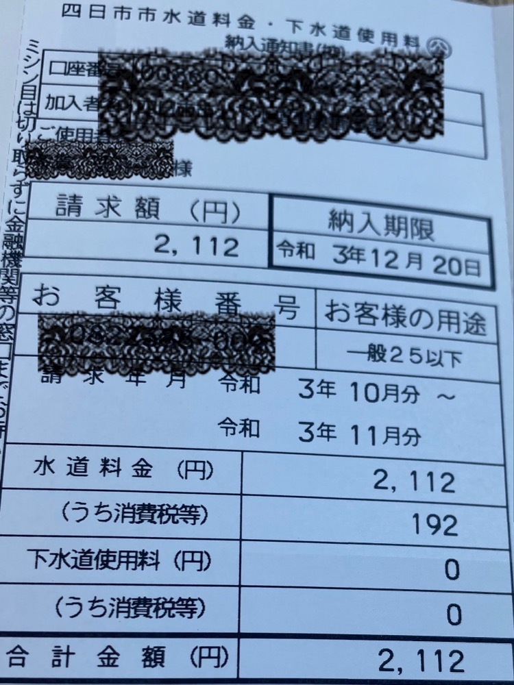 今月の水道代 👇