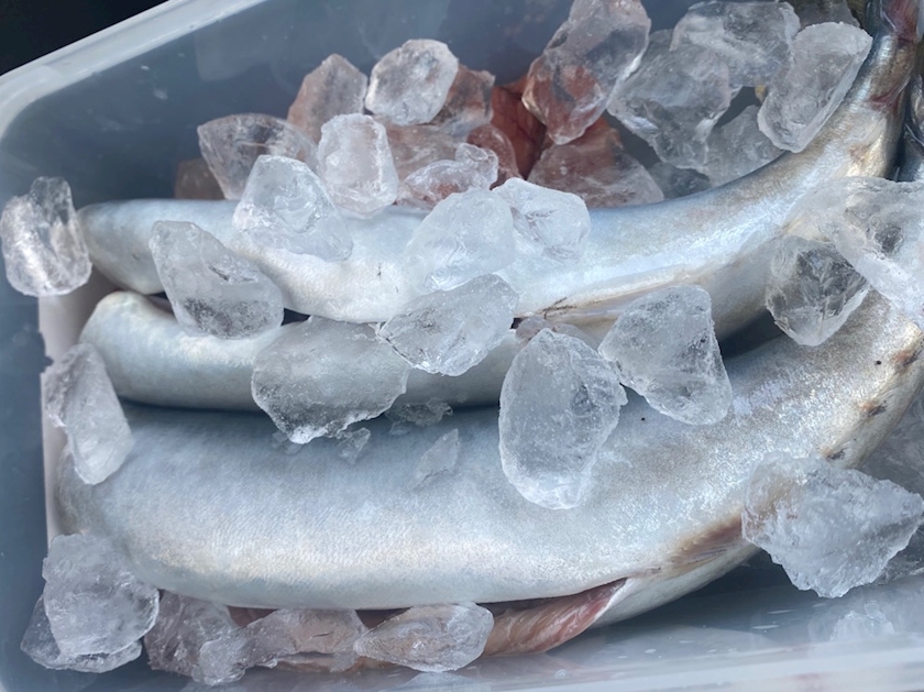 すぐに職場のキッチンでハラワタと頭を落とし(卵入ってた😍