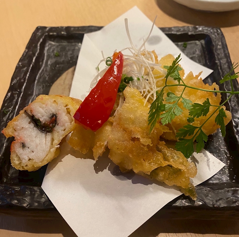 ハモの梅しそ巻きの天ぷらも