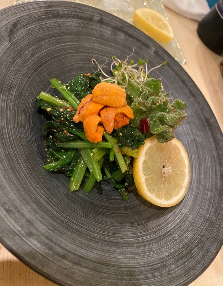 ウニとほうれん草のお浸しに 🥬