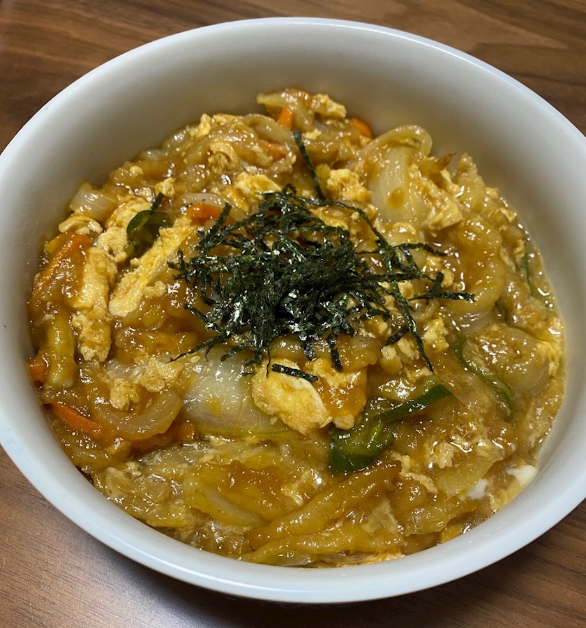 甘辛く炊いて卵でとじて