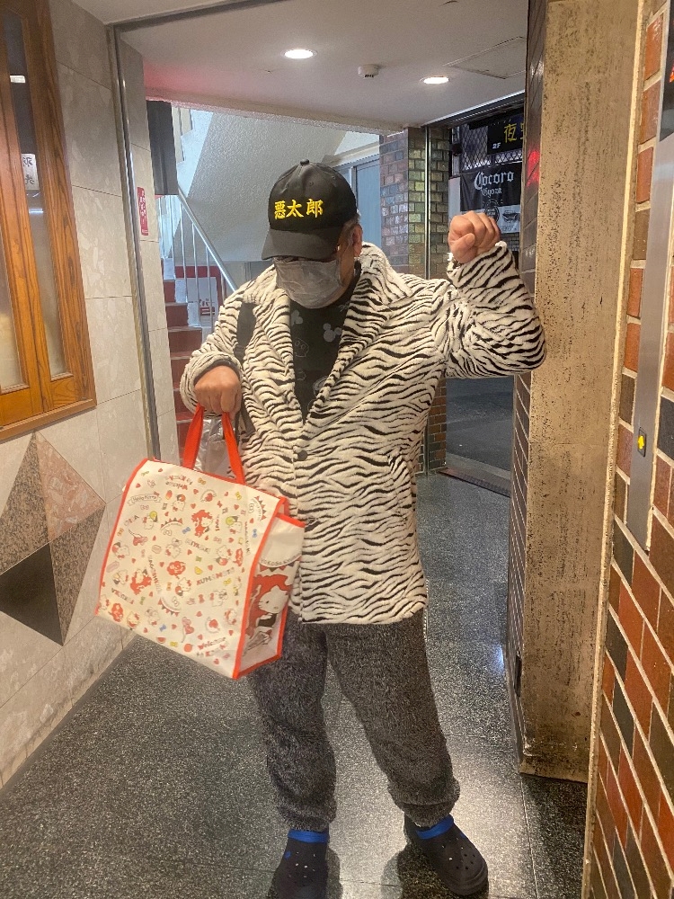 いつの間にかド派手なゼブラ柄の服を着とる 😂