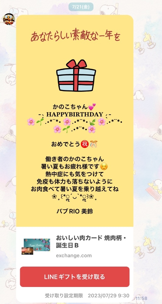 LINEギフトのプレゼントが届きました〜