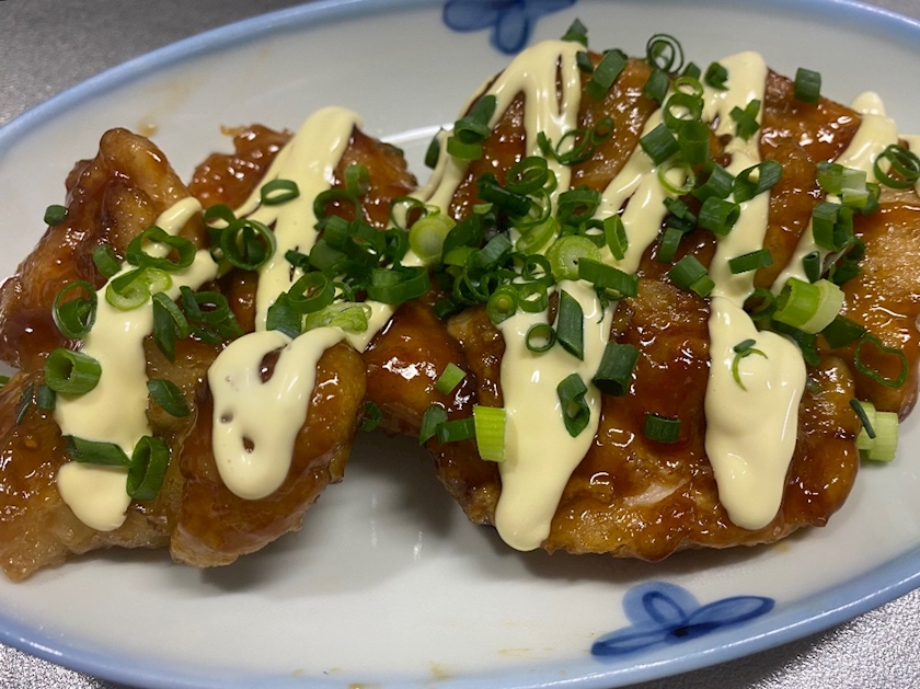 こないだ多めに作って冷凍しといた照りマヨチキンと 🐔