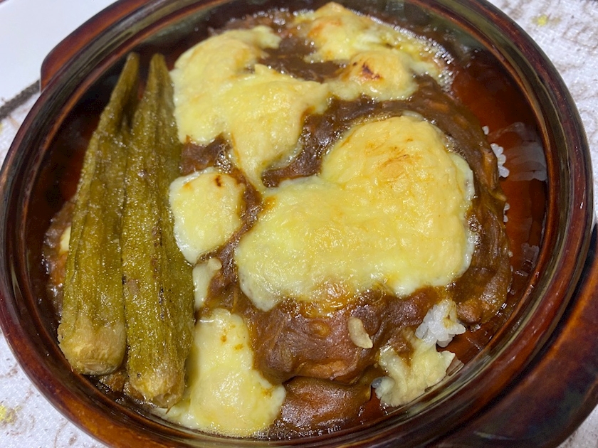 残った胸肉カレーで