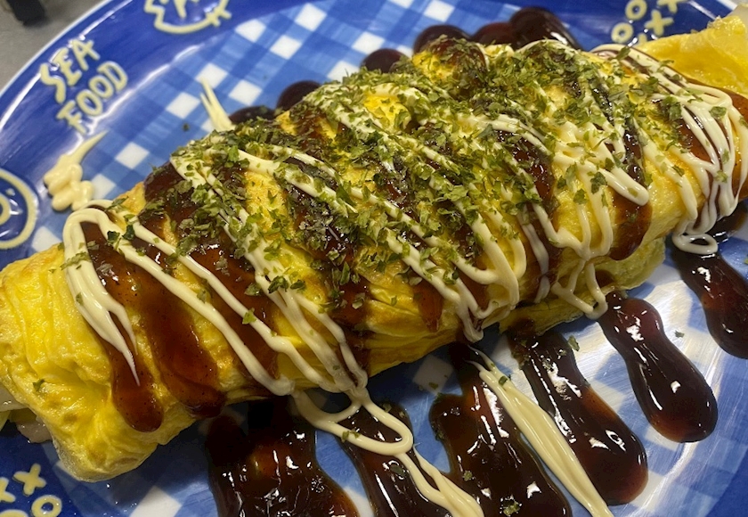 豚肉とキャベツを卵で巻いた