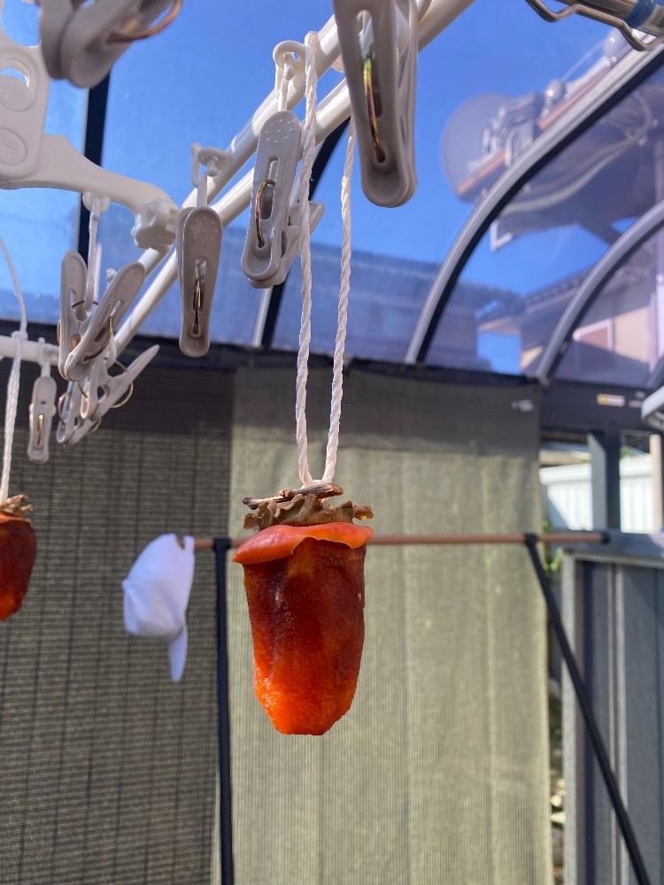実家に両親の顔を見に行ったら 干し柿くれたから 🍊