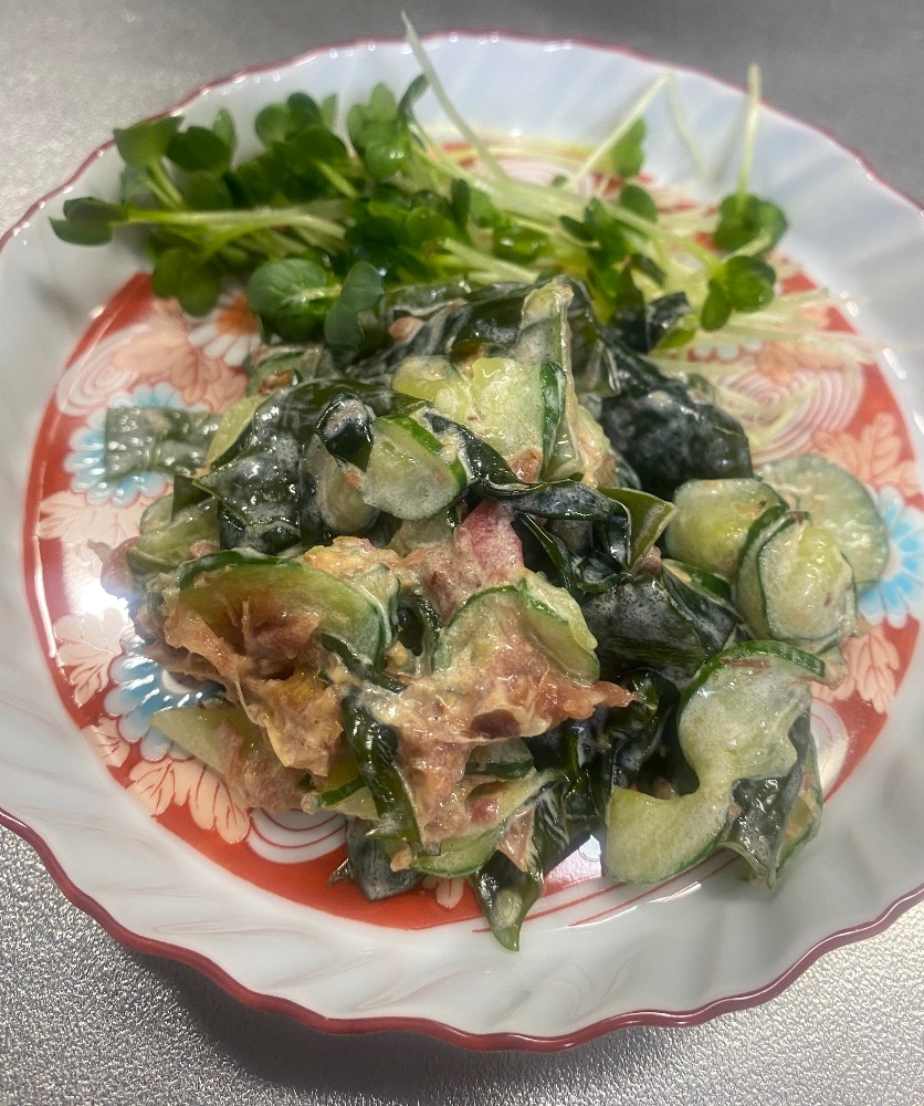 キュウリとワカメの梅おかかマヨ和えと 🥒