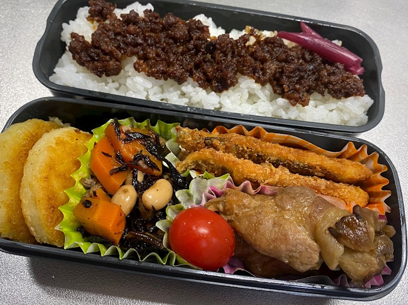 ご飯の上には肉味噌をon