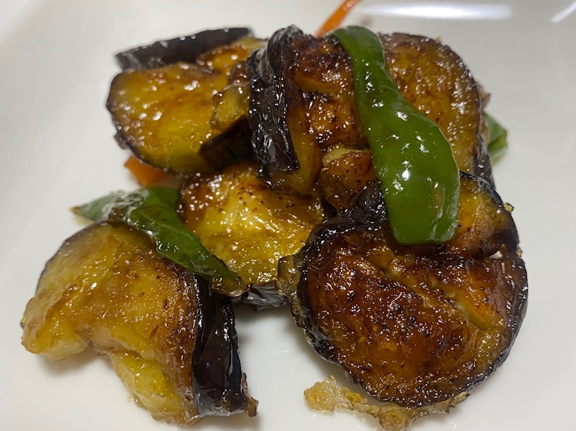 片栗粉を付けて揚げ焼きにし 🍆🫑