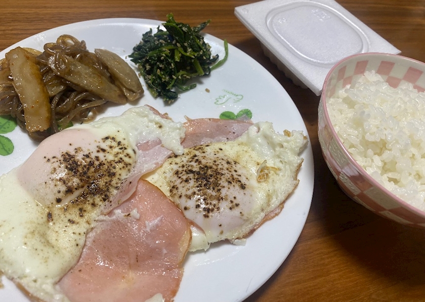 今日はハムエッグ定食〜 🥚