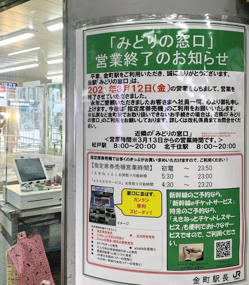 EX予約が便利になり、みどりの窓口が消えつつある昨今