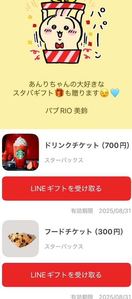 引き続きLINEギフト