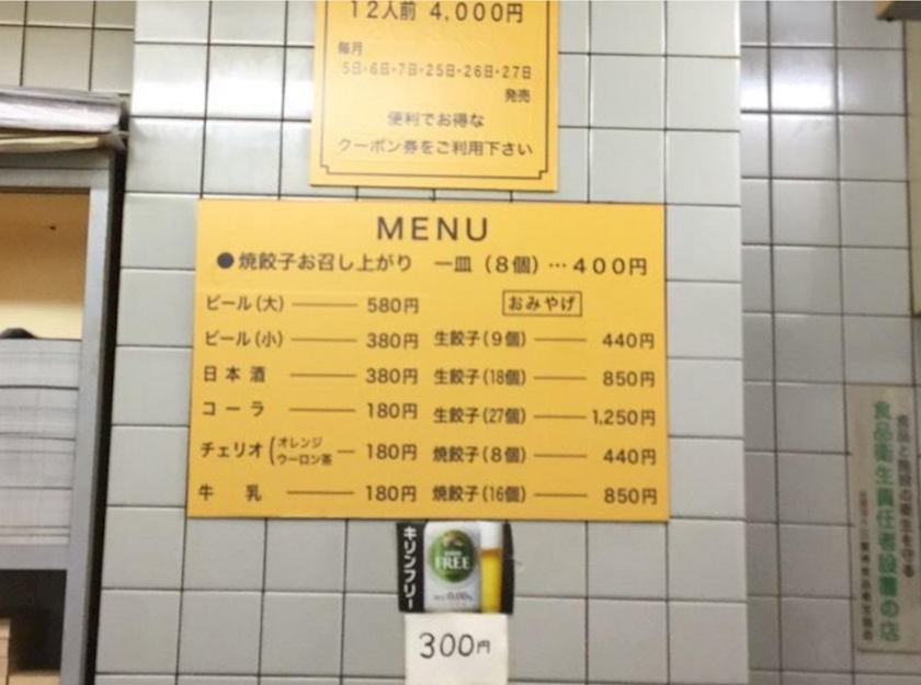 メニューはビール、日本酒、ジュース、牛乳のみ!