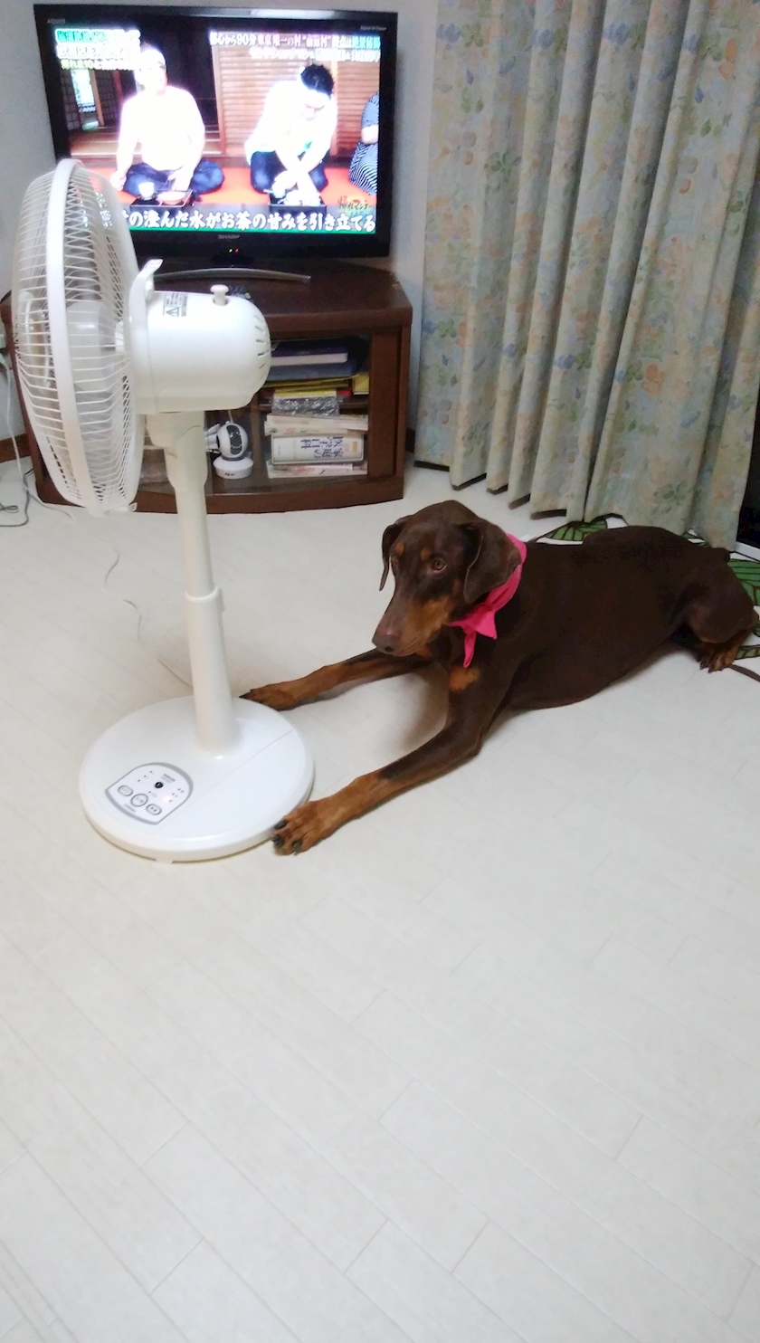 ワンコって、扇風機の風では涼しいと感じないんですもんね~