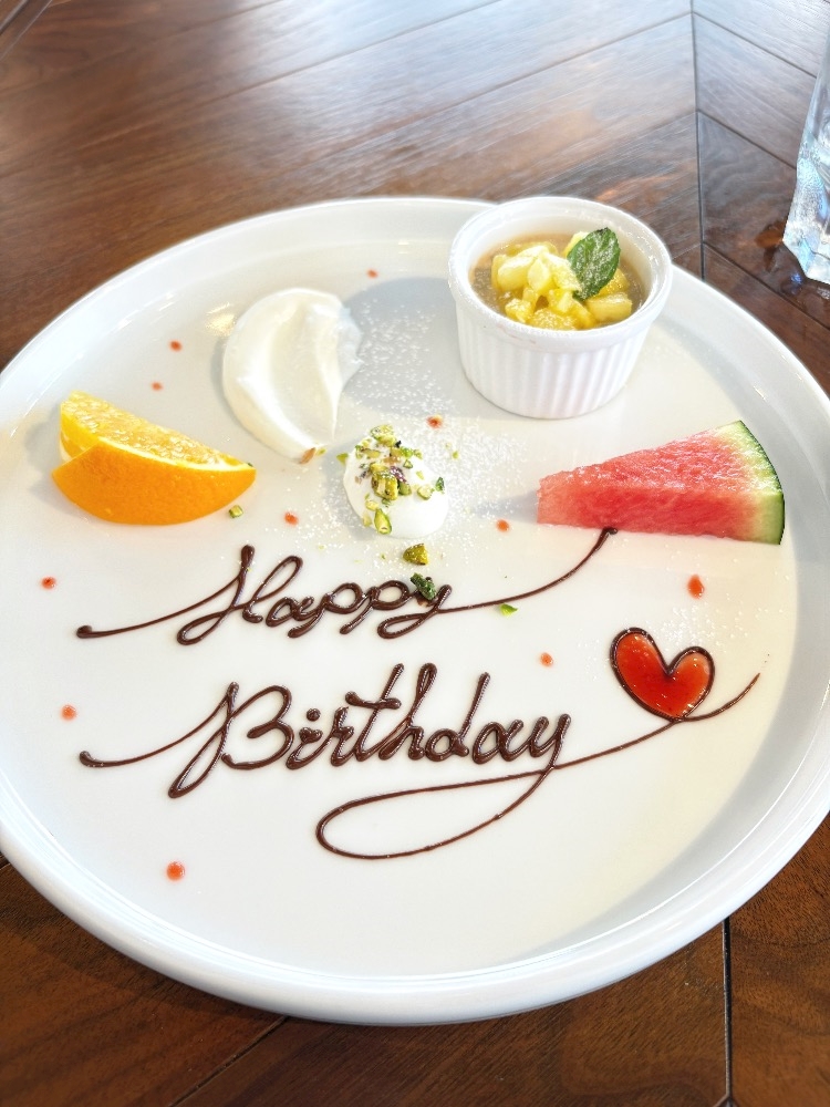 デザートプレート運ばれてきて、お誕生日おめでとうございます❣️て👏😮