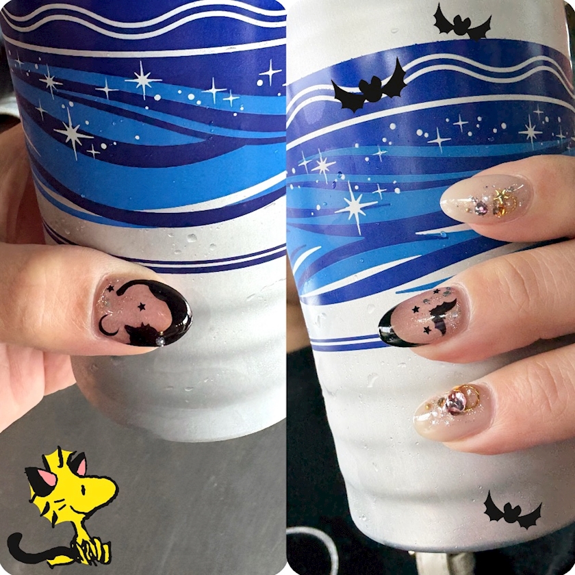 ハロウィンネイルちてるよー💜🐈⬛🧡🦇🖤