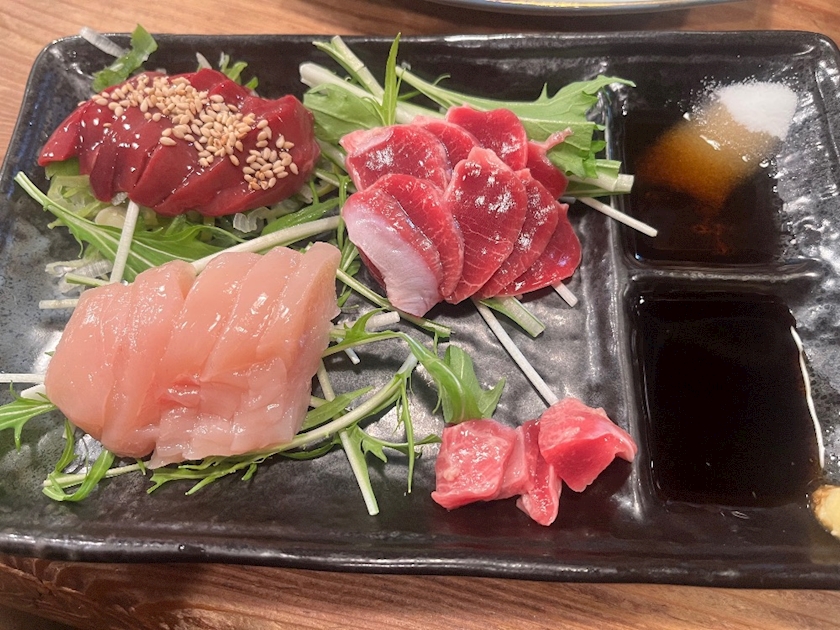 肝とこころ、砂肝、ささみ刺身盛り