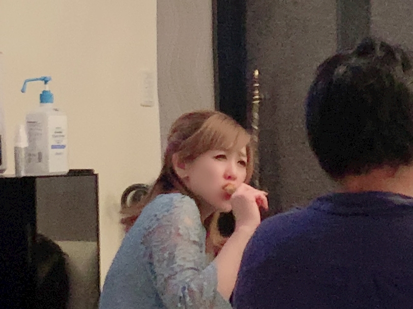 熱々を頬張るあやちゃん笑