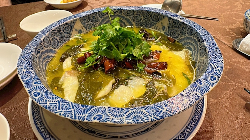 魚の青唐スープ頼んだら大盛り過ぎて