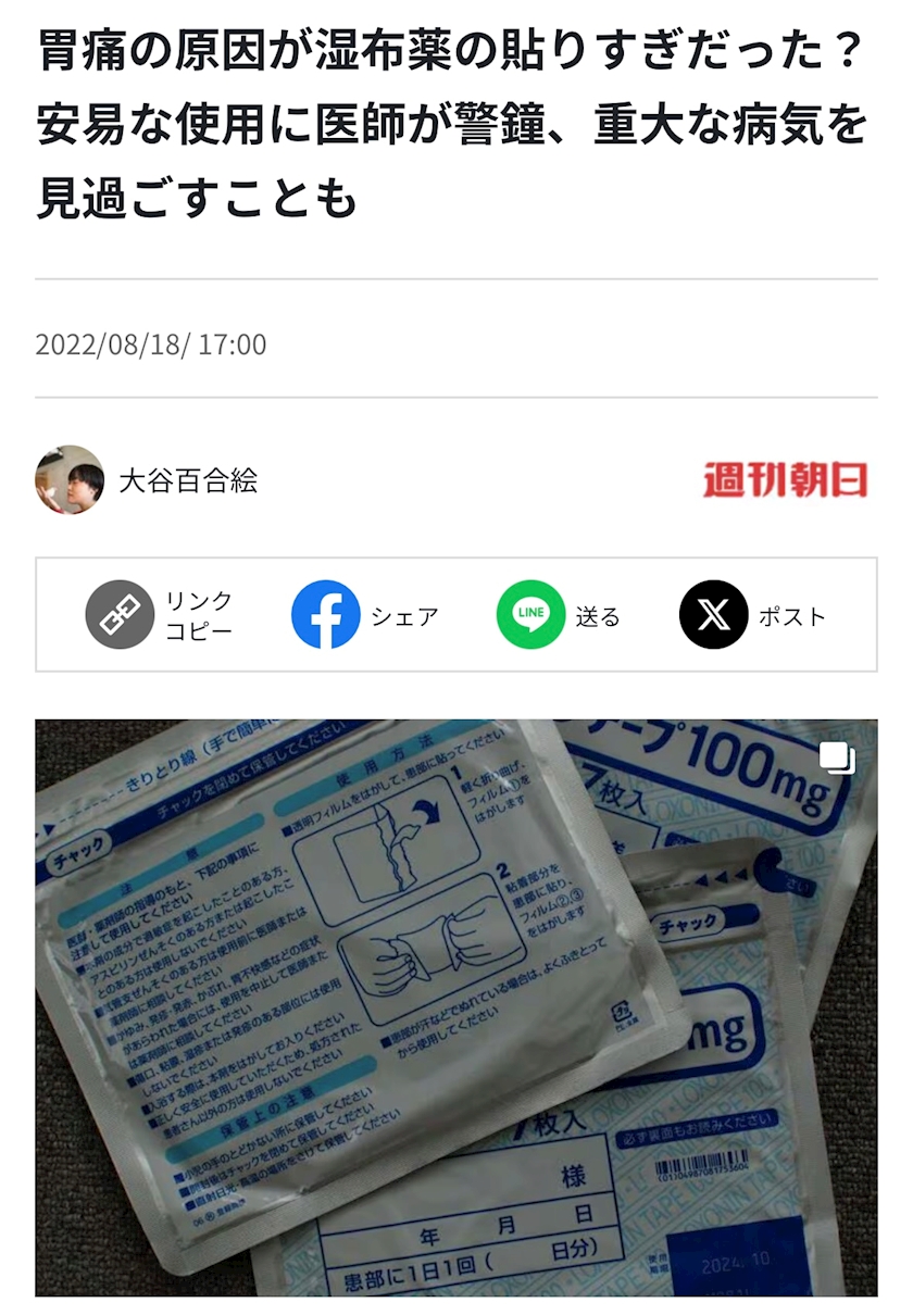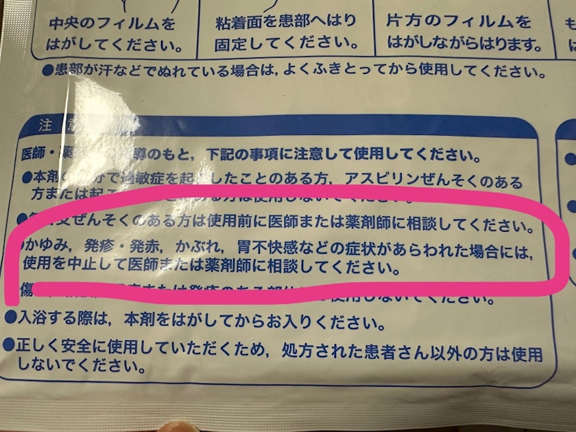 背中の湿布もロキソニン