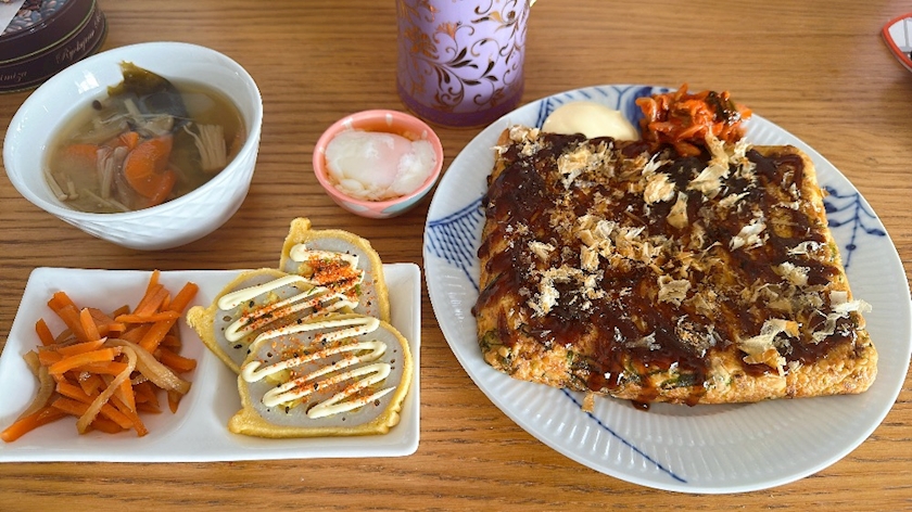 お豆腐えのきツナキャベツのお好み焼き
