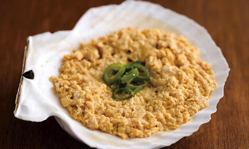 大きなホタテの貝殻を鍋のように使い