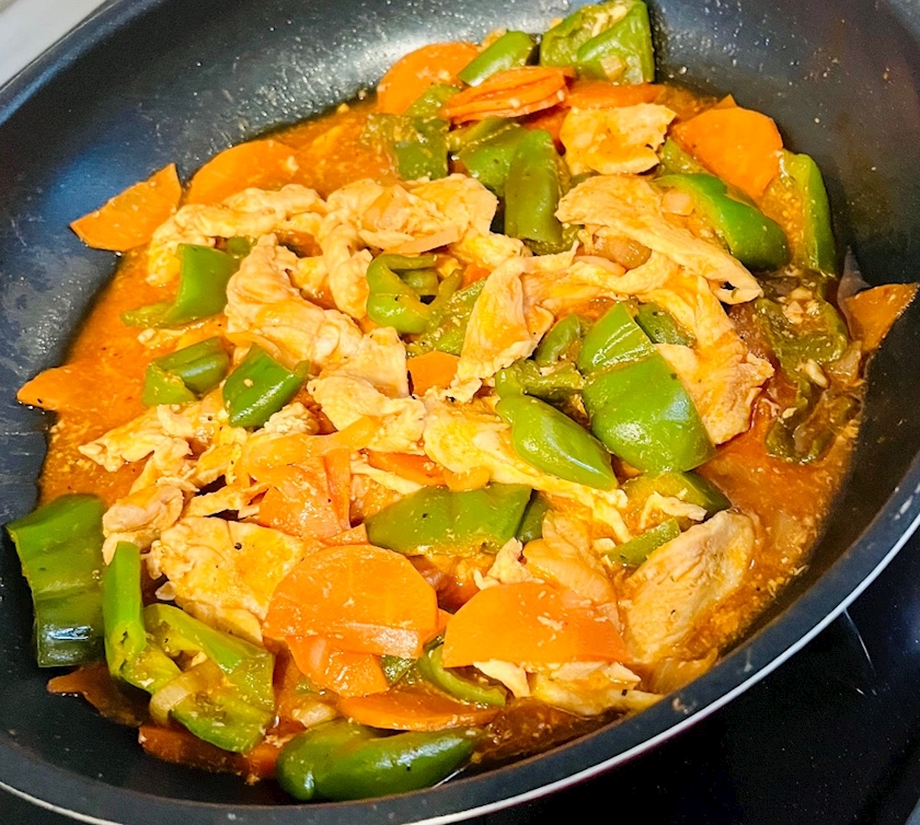 鶏むね、人参、ピーマン、玉ねぎの