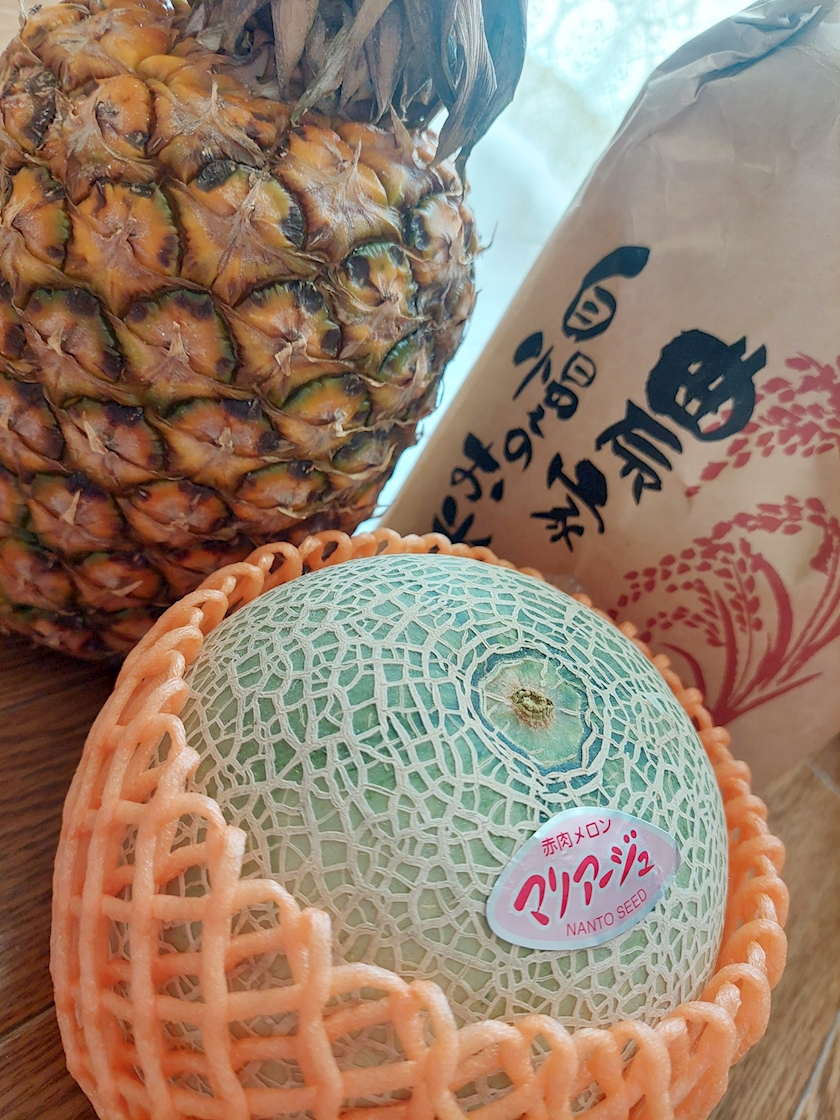 あおいからパイナップルとメロンとお米を頂きますた🍍🍈🍚