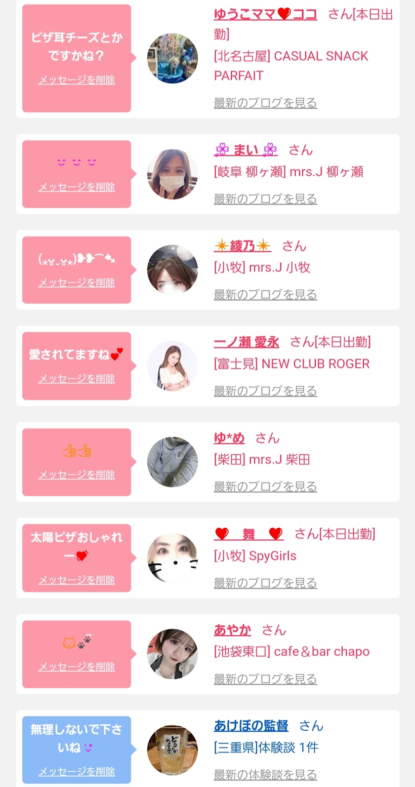 あたしがMrsᒍ津店に一体した時にしゃべりかけてくれた