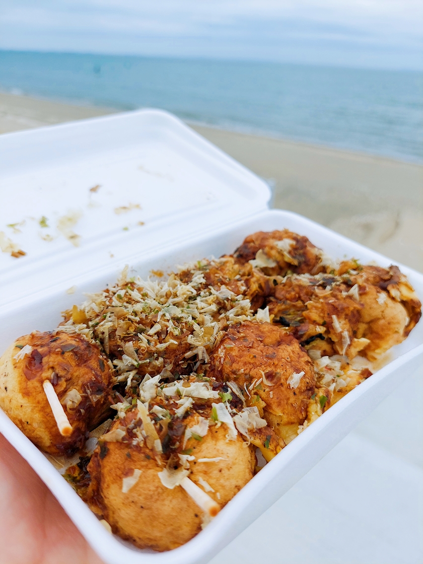 ベチャっとしたたこ焼きを持って
