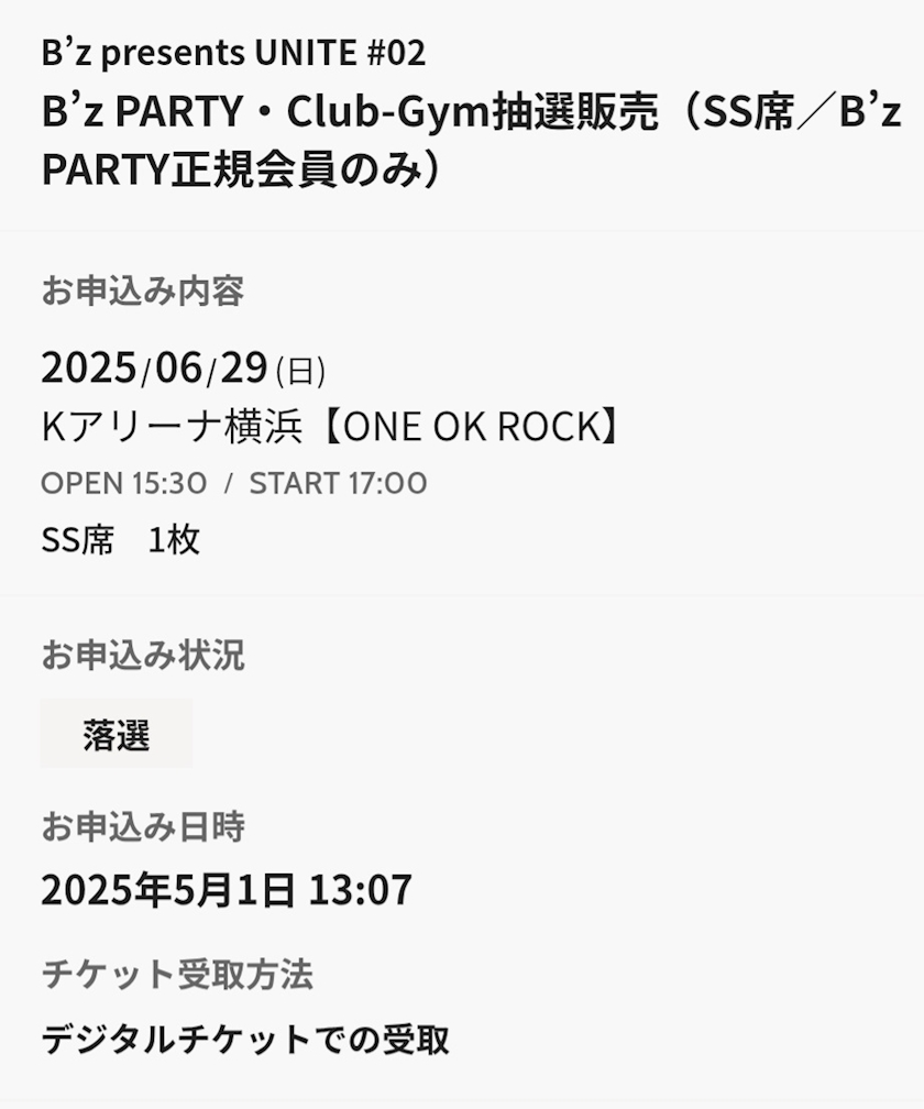申し込んだチケットが落選したんだYO!!!