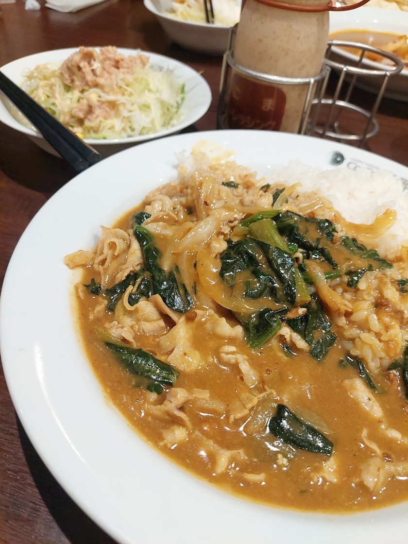 必ずほうれん草カレーに豚しゃぶトッピングがお決まり🍛🩷