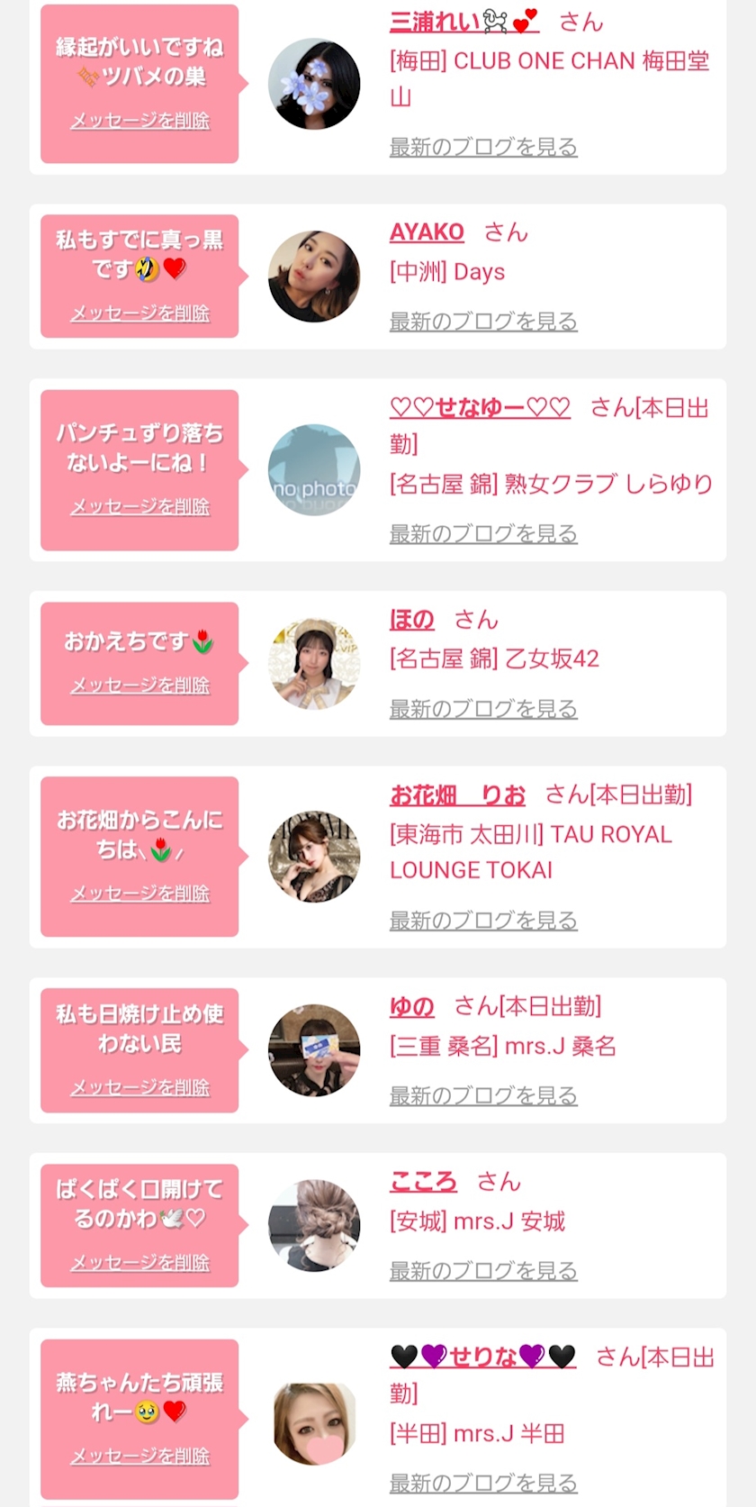 あたしが四日市で働いていた時のキャスト仲間が