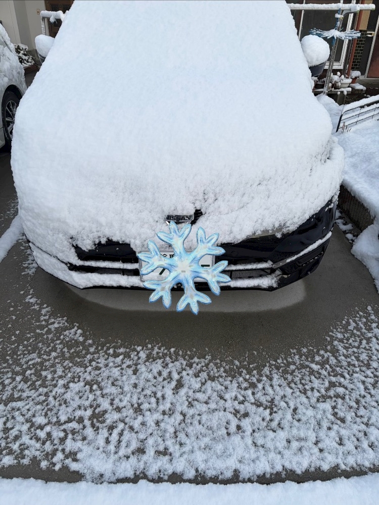 朝起きて、雪が車にはしっかり積もってました💧