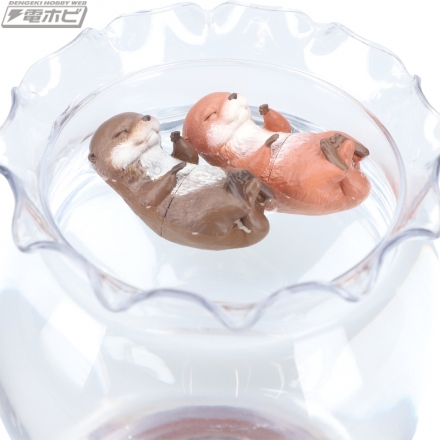 カワウソの赤ちゃん「ベビウソ」は、デフォルメ感を抑えたリアルな造形で、種類によって横浮きのものと縦浮きのものに分かれた全6種がラインナップ! 水に浮かべると胴体や顔をひょっこり出す「上手にぷかぷかベビウソ」と仰向けに浮きながらすやすや眠る「すやすやベビウソ」は横浮き、「ぷかぷかつかまり練習ベビウソ」は手で何かをつかんでいる様子を表現しており、コップや水槽などのふちに引っかけるとへりにつかまって泳ぐ練習中のような姿になる縦浮きです。