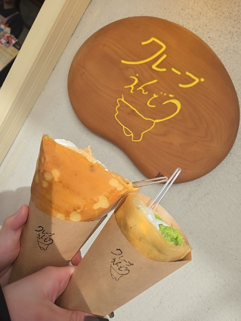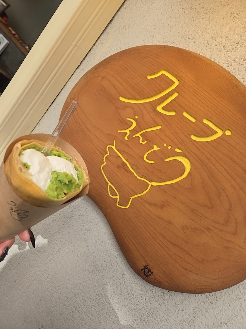 ずんだのクレープが有名らしくて、それを注文しました!